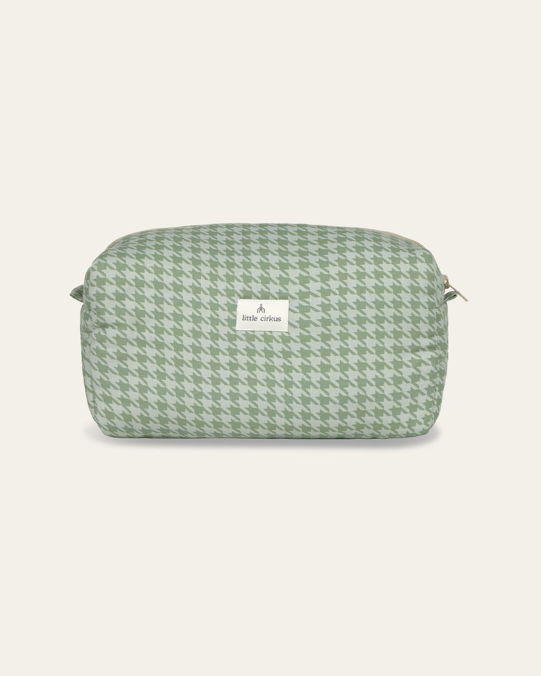 A soft, padded toiletry bag made to protect everything you pack inside. Super roomy — perfect for nappies, wipes and all those baby essentials you want to keep together. Water-repellent lining and zip closure.