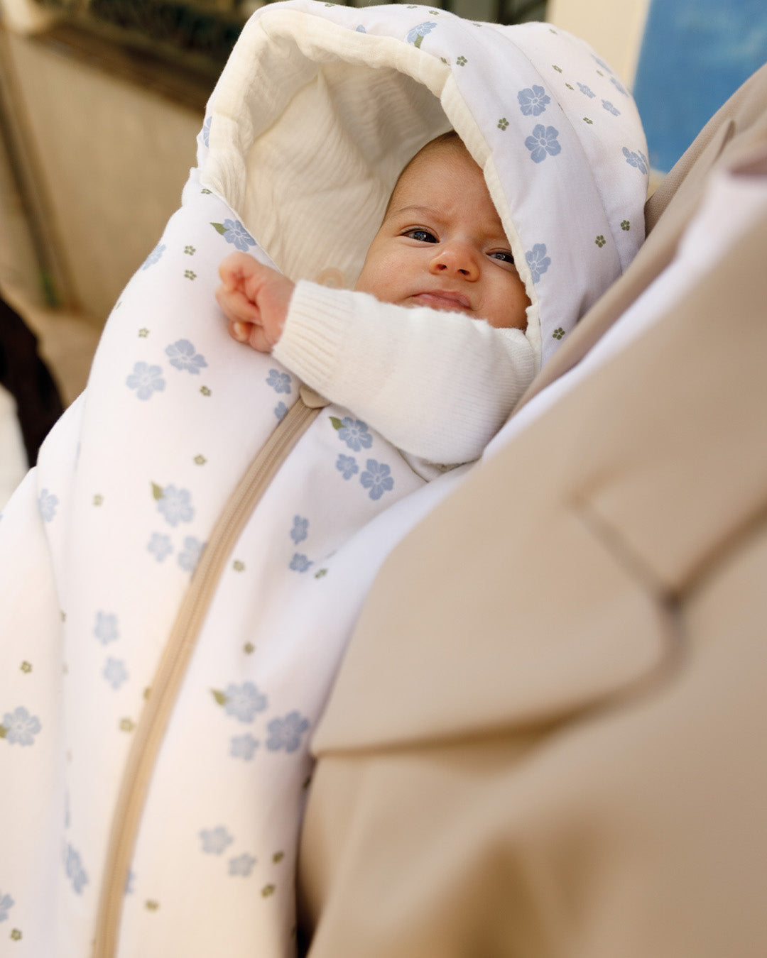 Winter footmuff, designed to keep your baby warm and protected during the colder months. Its rounded shape provides comfort and security, while the front zipper makes it easy to cover or uncover your baby without waking them up.